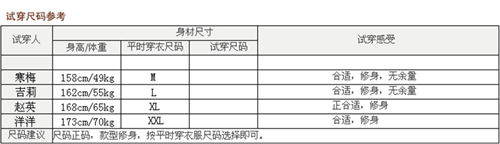 內頁在一些細節處理上應該還有一定的提升空間。例如:給出的試穿尺碼參考中,只有平時穿衣尺碼卻沒有試穿尺碼,這樣的參考等于沒有參考。