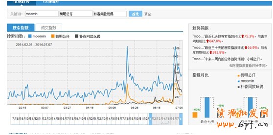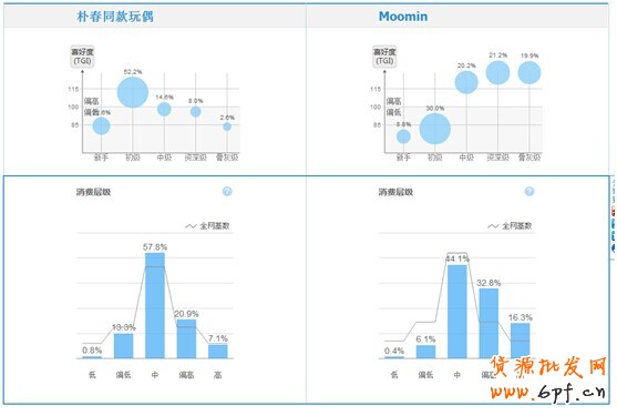 指數推薦的“Moomin” 搜索量是“樸春同款玩偶” 的兩倍多,并且是同一款寶貝,寶貝數量:寶貝數量是3600多,搜索量是1000左右。