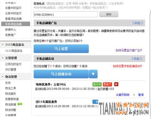 第三步:點擊店鋪后臺左側導航中的【手機淘寶店鋪】,再選擇【手機店鋪基礎功能設置】里面的【設置店鋪營銷活動】