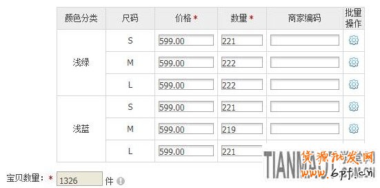 第二步:進(jìn)入操作頁面后,看到寶貝規(guī)格