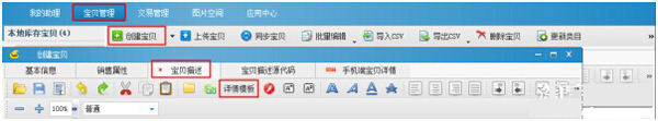 1、登陸淘寶助理—寶貝管理—創建寶貝—寶貝描述,選擇詳情模板: