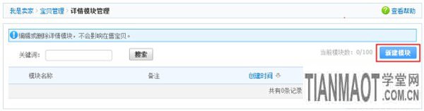 5、若不需要修改,則可以關閉當前網頁窗口,回到步驟3詳情模塊管理頁面,新建的模塊會出現在模塊管理列表內: