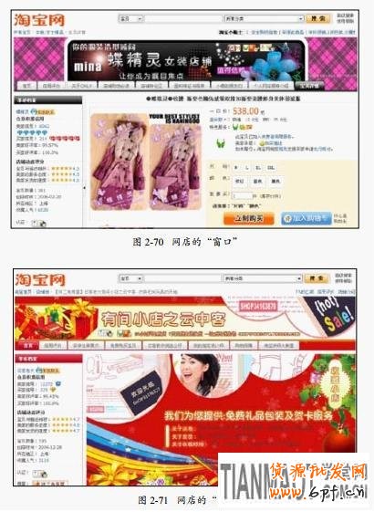 在網絡的“大街”上顧客直接看到的不是店鋪的信息,而是商品的信息,當顧客對某個商品信息感興趣并單擊后,就來到商品的描述頁面,如圖2-70所示。一個網店的每一個商品都有機會出現在“大街”上,因商品具有一定的數量,所以我們也習慣把商品描述頁面稱之為網店的“窗口”。