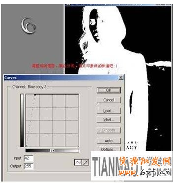 接下來,為了將人物和背景區(qū)分開來,我們會在生成的blue copy 2通道內將背景色變成純白,可以通過ctrl+M來實現色調的調整,具體如圖: