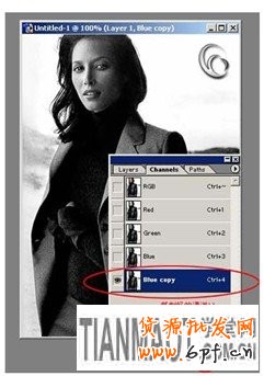 把圖導入ps,轉入通道, 然后選擇BLUE通道來進行操作,如下圖: