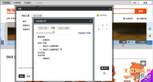 c、點(diǎn)擊添加“彈出框選擇”頁(yè)面,勾選“淘寶雙12店鋪承接頁(yè)”,點(diǎn)擊確定即可