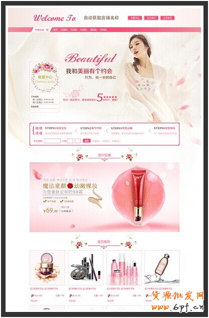 以下這款以粉紅色為主的模板,清新粉嫩,適合少女的服飾或化妝品等,顏色統(tǒng)一、彰顯模板的專業(yè)大氣,該模板屬于基礎(chǔ)版模板,適合新手賣家,模板中的粉紅色是本來就有的,模板中有輪播的圖片,可以插入你做好的圖片,十分簡潔易操作。