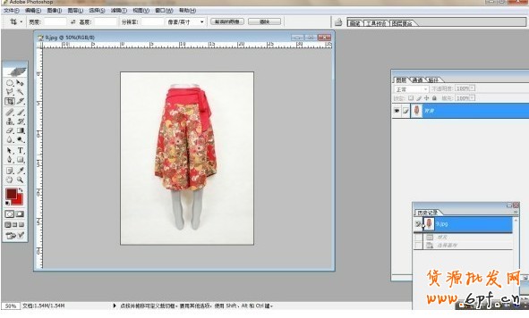 7、選擇拖移動工具(工具欄最右上方,上圖工具欄點下去的那個位置),按動鼠標,把水印圖拖到主圖上來。