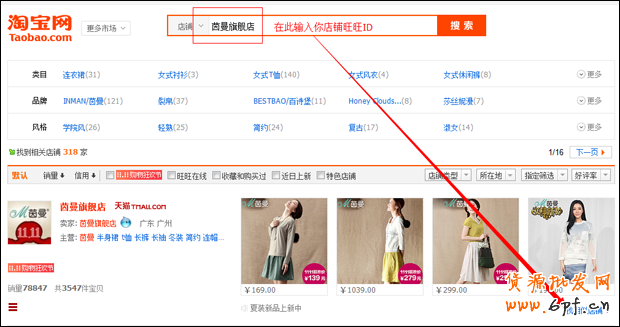 選取店鋪時要選那些和你店鋪客單價相同風格相近的,目標店鋪圈定人群的時候最好在數千以上,才具有定向意義(同一個店流量越大的資源位圈到的人越多)。那怎樣快速找到與你店鋪風格價位相近的店鋪呢,請看下圖: