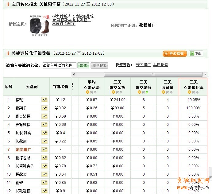 店鋪選擇的推廣商品不太適合。比如,近期主推的羊毛鞋墊就是一個典型的例子,應季產品卻賣不動,價位定在淘寶中等水平,直通車三天成交轉化率在 8.74%,花費171.42元,成交金額240元。11月的數據顯示直通車在這款產品上虧錢的。