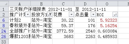 上圖是最近直通車1-11日的數(shù)據(jù),站外的ROI(ROI=支付寶成交額/直通車消耗)