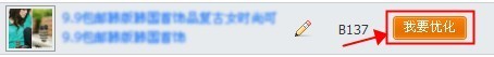 進入寶貝優化頁面后,點擊某寶貝右邊的【我要優化】按鈕,如下圖: