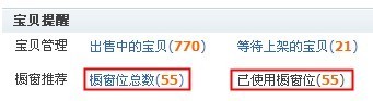 這是一個非常重要的概念,絕對不能跟掌柜推薦位相混淆。櫥窗位是淘寶給不同信譽等級的店鋪相應數量的搜索優先展示位,淘寶搜索時會優先排列有推薦櫥窗的寶貝,所以我們把有限的櫥窗推薦給最接近下架時間的寶貝,這樣寶貝搜索排名就會大大提前。櫥窗寶貝一旦下架了就需要把該寶貝的櫥窗位空出來推薦到另一個寶貝上。