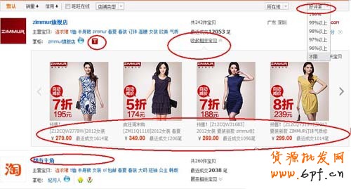 在搜索時,用戶還可以根據店鋪的好評率進行篩選,好評率分為100%到96%五檔,每個店鋪的評價和動態評分也出現在搜索結果列表中。