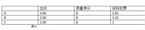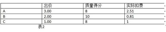 大家看表格A為什么拍第一,A的綜合排名是3*8=24,B的綜合排名是2*8=16,所以A排第一名。哪現(xiàn)在A的扣費(fèi)=B的出價(jià)XB的質(zhì)量得分/A質(zhì)量得分 + 0.01元,也就是2*8/8+0.01=2.01,接下來我們看下一個(gè)表格2