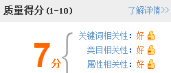 因此,質量得分是關鍵詞的搜索匹配相關度的綜合指數,當買家搜索關鍵詞時,匹配相關度越高的寶貝質量得分越高,反之則越低。在關鍵詞出價相同的情況下,質量得分越高,排名越靠前。推廣展示費用越低。