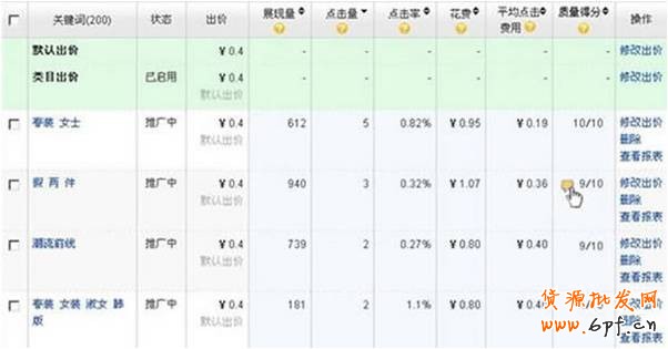 質(zhì)量得分為4、5、6、7分的關(guān)鍵詞,如果為熱門詞,例如“春裝”,由于熱門詞適合的類目屬性比較寬泛,所以在相關(guān)度部分的得分不如更精準(zhǔn)的關(guān)鍵詞高。我們建議您根據(jù)推廣效果進行調(diào)整,如果效果符合您的期望則可以適當(dāng)提高出價,反之,也可以降低出價或者更換關(guān)鍵詞。