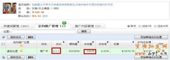 直通車推廣三條路。定向、類目加關(guān)鍵詞。其中類目太泛,花錢快的很,但是效果一般。關(guān)鍵詞那是細(xì)活,并非一朝一夕之事。而定向推廣準(zhǔn)確,轉(zhuǎn)化率高,夠給力。