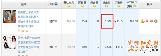 如下面是女裝定向的2款寶貝的出價(jià)和點(diǎn)擊情況。