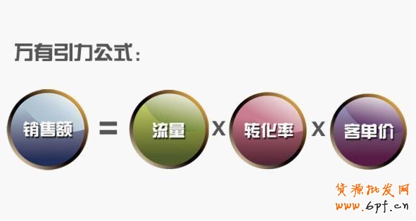 這個是電子商務的萬有引力公式,淘寶中涉及到的所有的東西(包括崗位、KPI、數據分析、推廣、運營)都可以從這個公式中孕育出來,因為電子商務,本質上還是商務,既然是商務那肯定是為了賺錢,說白點銷售額基本上可以決定你的電商做的好還是不好。