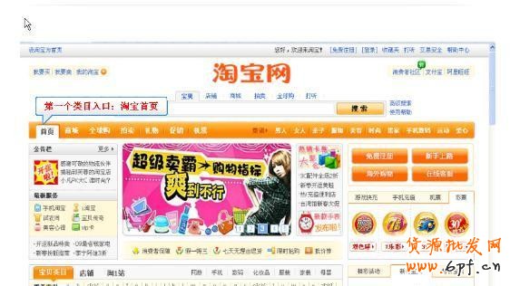 對于直接搜索類目的買家一般也有兩個入口:一個是點擊淘寶網首頁,然后直接點擊所要選擇的類目,進入搜索頁面。如: