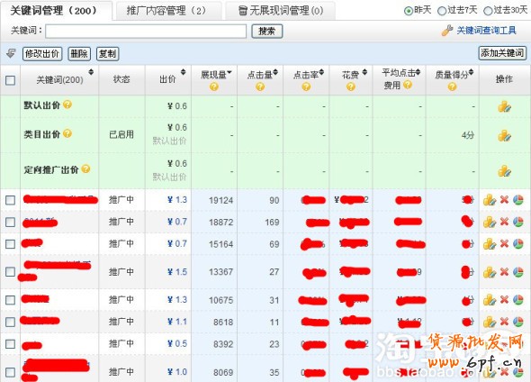 把A款上直通車的四個計劃,每個計劃設置200個關鍵詞,然后隔天看轉化數據,對關鍵詞進行微調,對高轉化的詞調高出價,對于有展現的,點擊率高但是轉化率卻很低的詞降低出價,但是不能刪除,把一些展現低的詞要進行刪除,從數據可以看出很多詞與寶貝的屬性是不相關的,但是確實是很好用,我們開車就是要找到這樣的詞。很多熱詞需要出價很高才能獲得點擊,當時我用一個熱詞出價出到1.2元都沒有點擊,或者有點擊了,轉化率不高,這樣就會虧本的,我個人建議應該避其鋒芒,搜索熱詞,也要設置,但是本人出價低,默認出價0.2元,盡量賽選競爭小的詞,發現轉化率很高,便提高出價,這樣就帶來了更多的成交量,當我銷量達到幾百件后,本人再使用熱詞,提高出價,這個時候就不會虧了。