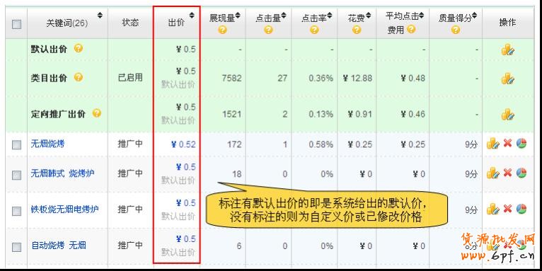 默認出價是由系統根據您推選的產品及關鍵詞結合淘寶網本類直通車的現狀自動給出的價格;自定義出價是您自己設定的關鍵詞價格。