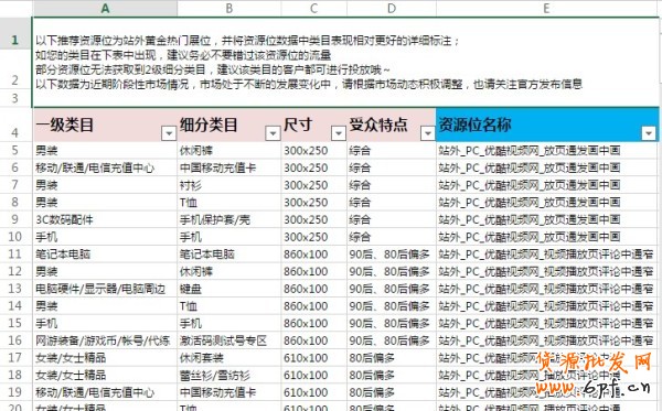 站外資源位細分至2級類目推薦表:http://box.cloud.taobao.com/s/1rqd45GChjG(再也不用擔心類目不精準了)(雙12表格將在近期更新,請關注)