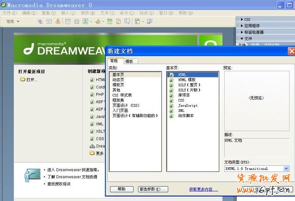 第三步:打開你剛才下載的Macromedia Dreamweaver 8,新建一個代碼頁。