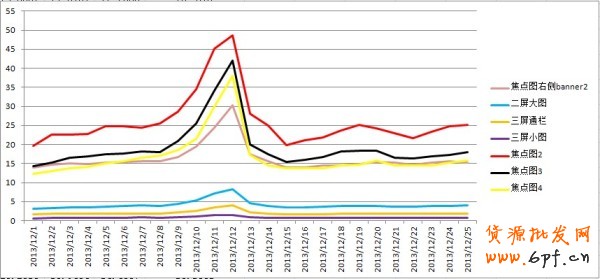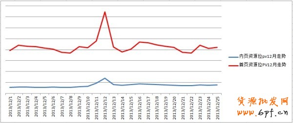 紅色為首頁(yè)資源位流量,藍(lán)色為內(nèi)頁(yè)重點(diǎn)資源位流量 雙十二過(guò)后 流量完全回歸正常 一點(diǎn)沒(méi)有下降趨勢(shì)