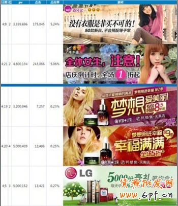 淘寶首焦4月點擊率統計表