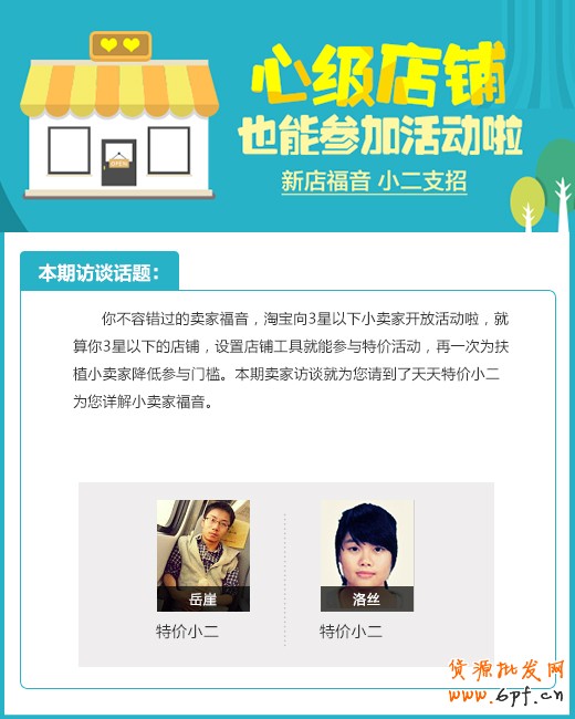 12月8日是新店有禮的第一期活動,天天特價之后回推出更多的活動,來幫助這些3心以下賣家。然后會落地在天天特價,成為天天特價一個常規欄目進行展示。新店有禮報名的渠道,我們前期會通過今日特賣招商入口,通過主題活動的形式展現出來:http://zhi.taobao.com/seller/。