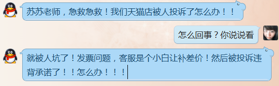 事件背景:C同學在向我哭訴說天貓被差評師投訴了。顧客問可以不可以開發票。客服回答說需要補差價。最終C同學的天貓店被投訴違背承諾,C同學欲哭無淚。