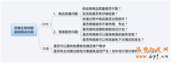 在這里,我把部分的原因和解決方案通過思維導圖展示給大家。不同的類目有不同的退貨原因,我們可以根據思維導圖的形式,進行推敲尋找解決方法,三思而后行針對性突破。
