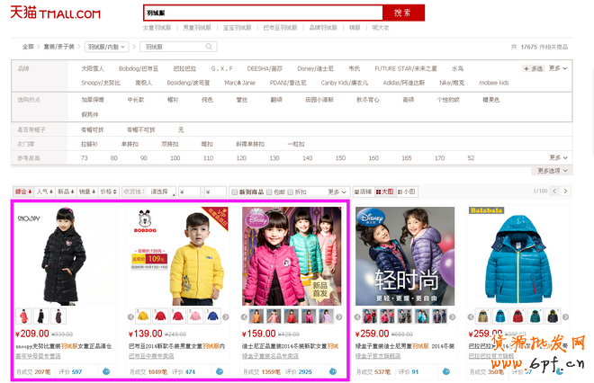我們需要做的是抽取這三個豆腐塊標題之中共同有的,符合我們產品的詞,例如:品牌、兒童、2014新款、秋冬、長款、加厚等等關鍵詞,摘取我們可以用的,然后和我們在上面一步選取的目標關鍵件進行組合。