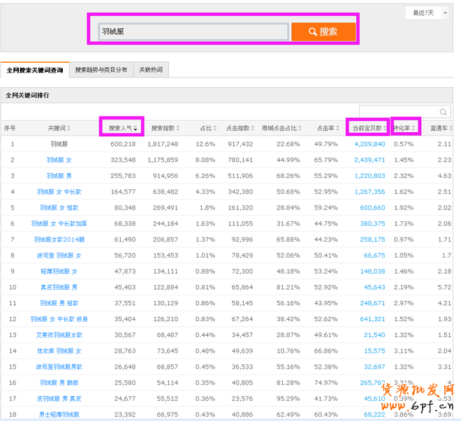 類目匹配問題,觀察選取的衍生詞之下,淘寶主推的是屬于哪個類目,是老年人羽絨服還是男士羽絨服,或者其他類目。