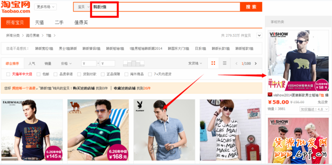 比如說我今天想買一件韓版t恤,去淘寶上搜“韓版t恤”