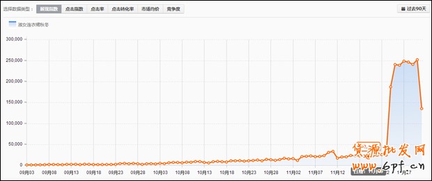 比如一件毛衣,它的主關鍵詞可以是針織衫,也可以是毛衣。那接下來我們想推廣這個寶貝,應該如何加詞呢?我的建議是,保持主推詞的一致性,我們把這二個詞放到流量解析里對比一下就可以看出,針織衫的展現指數和點擊率都遠高于毛衣,但毛衣的點擊轉化率略高手針織衫,這種情況我們肯定選針織衫為主推詞。