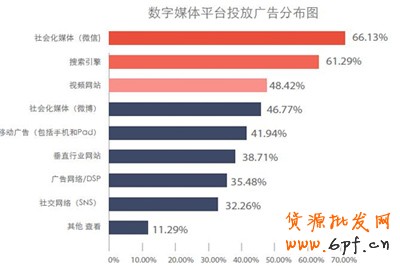 此外,搜索引擎、視頻網站、微博分列2-4位,移動廣告憑借41.94%列在第五位。對于企業主來說,數字平臺的百花齊放可以讓他們以最優的組合方式在數字媒體進行廣告投放。