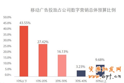 盡管品牌開始專注在移動平臺進行投放廣告,但是目前移動廣告投放占品牌總體營銷預算的比例并不高。87.1%的品牌表示這一比例在30%以內,其中43.55% 的品牌表示這一比例仍在10%以下,僅有9.68%在50%以上。但是,品牌對移動廣告表示出來的強烈興趣,顯示了未來這一比例大幅提升的可能。