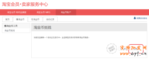 - 賺金幣:賣家設置全店商品或單品的淘金幣抵錢活動,買家購物時可用淘金幣抵現,買家的金幣70%打入賣家淘金幣賬戶。