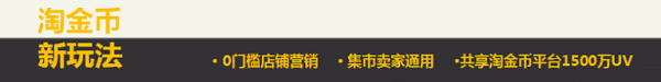 - 淘金幣營銷——為淘寶賣家量身打造的店鋪營銷工具,您可以通過賣家身份賺金幣,給買家發金幣,打造店鋪專屬自運營體系,提高買家粘性與成交轉化。