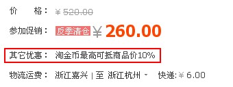 買家在寶貝詳情頁面可以看到淘金幣抵扣的優惠提示