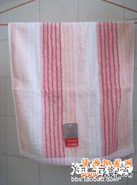 毛巾的側標,很清晰的印制【雙燈家紡】的字樣,其中還包括貨品,規格,品名和地址及網店地址等等,很正規的商品!!!