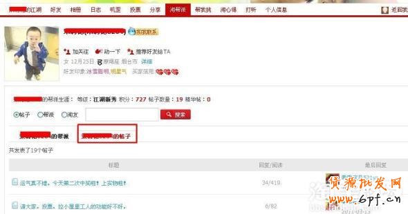 之后再點擊他的帖子,右方就可以看到他所有在論壇發表的帖子了,打開就可以助威了。但如果你的帖子里只有他的助威,而他沒有留下足跡,又出現該回助用戶論壇無貼的情況,畫面會出現: