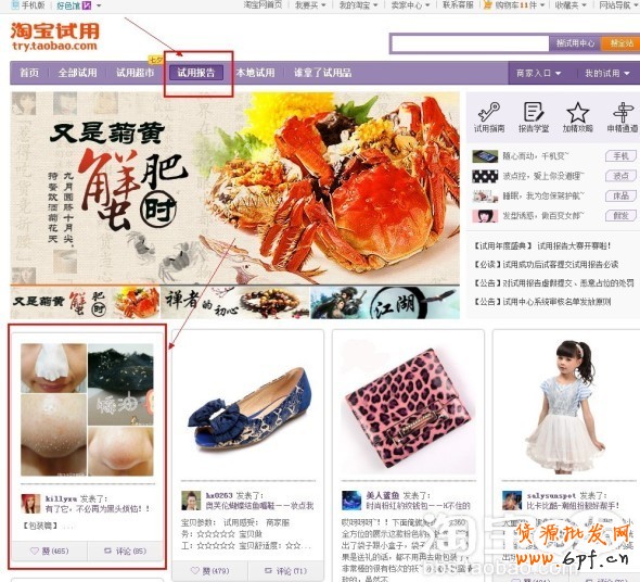 試用報告版塊傳送門http://try.taobao.com/try_share.htm?spm=a1z0i.1000799.1000695.4