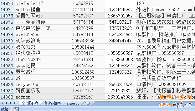 有效淘客數(shù)據(jù)整理出來后,下面是找到他們的聯(lián)系方式和推廣方式,通過搜索步驟一整理的數(shù)據(jù)查出這部分淘客的資料。如果沒用,我們記錄下來再想辦法,怎么做在下一連載資源庫里面會提到。
