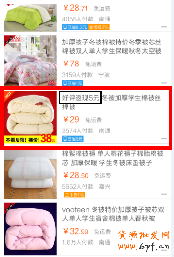 (2)創(chuàng)意標題可更具創(chuàng)意,因為淘寶手機端的創(chuàng)意標題是直接展現(xiàn)出來的,而不像PC端那樣隱藏,所以這里的標題可讀性就會更高。如下圖,多添加促銷詞“月銷萬件”“好評返現(xiàn)”等,可以刺激用戶點擊。
