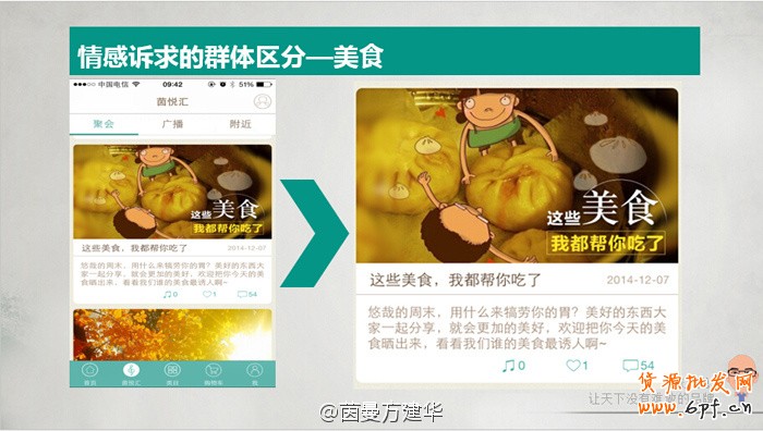 有共同情感訴求的,或者愛好相同的用戶喜歡扎推在一起。通過不同的應用版塊滿足比如吃貨、明星粉、達人粉、美劇迷等等這些群組要求。