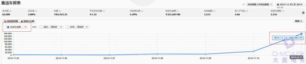 雙11終于到了,我們打開了全店的所有流量渠道,所有計劃改成了全國投放,分時折扣比平時增加了20%-40%的幅度。通過天貓直通車報表,我們發現在無線端和站外的投放上相對應的PPC較低,也就是說流量的成本都較低。我們幾乎把站外和移動端的折扣拉大到了200%,每個計劃都加滿“加絨、保暖、加厚”等這些寶貝的核心特性詞,設置單獨的雙11的促銷詞的計劃,專門推放雙11的促銷詞,而且每個計劃都使用雙11標簽的推廣圖,主推的計劃設置成無限日限額。